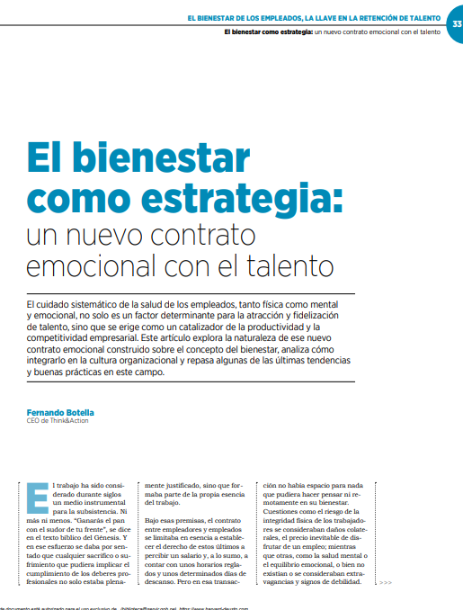 Título: El bienestar como estrategia: un nuevo contrato emocional con el talento Autores: Fernando Botella Revista : Harvard Deusto Año: 2025 Páginas: 1-9 Formato: digital Temas: CULTURA ORGANIZACIONAL | PRODUCTIVIDAD | DESARROLLO HUMANO | GESTIÓN DE TALENTO | EMPATÍA LABORAL | SALUD FÍSICA Y MENTAL Disponibilidad: Solicitar documento a biblioteca@servir.gob.pe