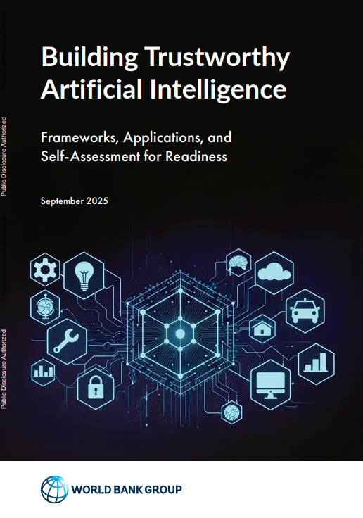 Título: Construyendo una inteligencia artificial confiable: marcos, aplicaciones y autoevaluación para la preparación Autor Institucional: Banco Mundial Año: 2025 Páginas: 52 Formato: digital Temas: GOBERNANZA PÚBLICA | RENDIMIENTO DE CUENTAS | TECNOLOGÍA DE LA INFORMACIÓN | TRANSFORMACIÓN DIGITAL | GOBERNABILIDAD | INNOVACIÓN